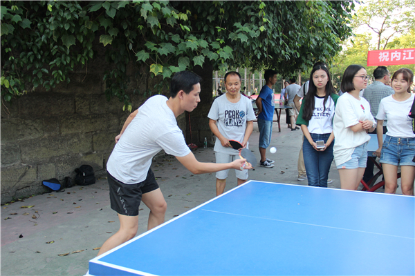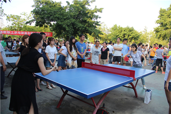 为丰富公司教职工业余生活,培养教职工团结合作的精神。2017年6月7日18:00,公司教职工代表与物理与电子信息工程公司教职工代表展开了乒乓球友谊赛。