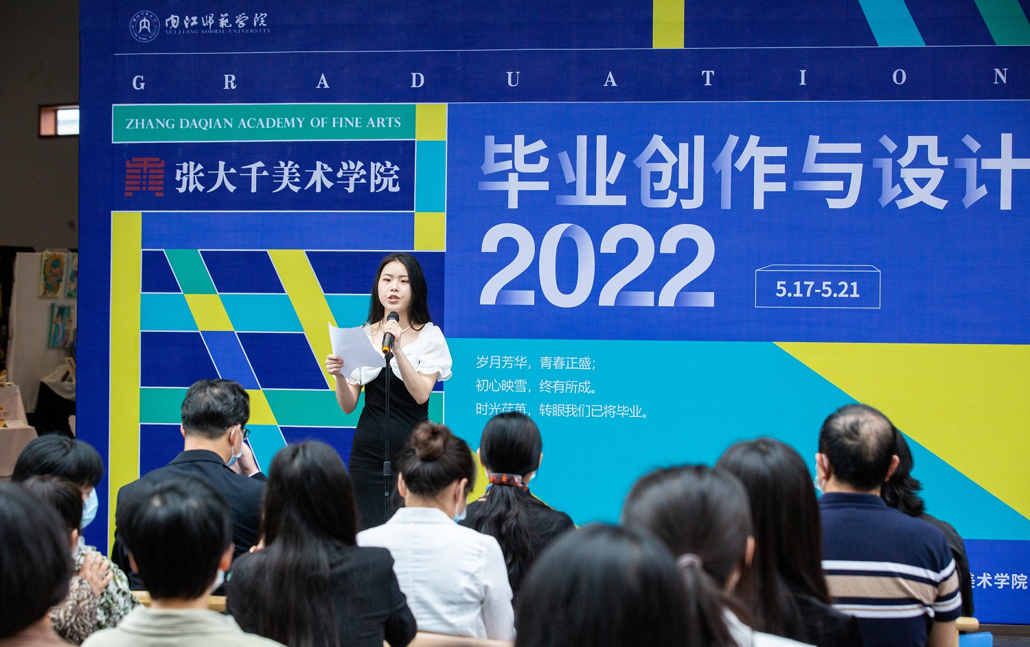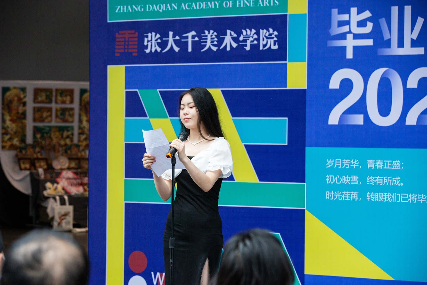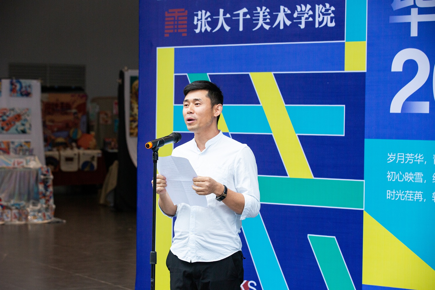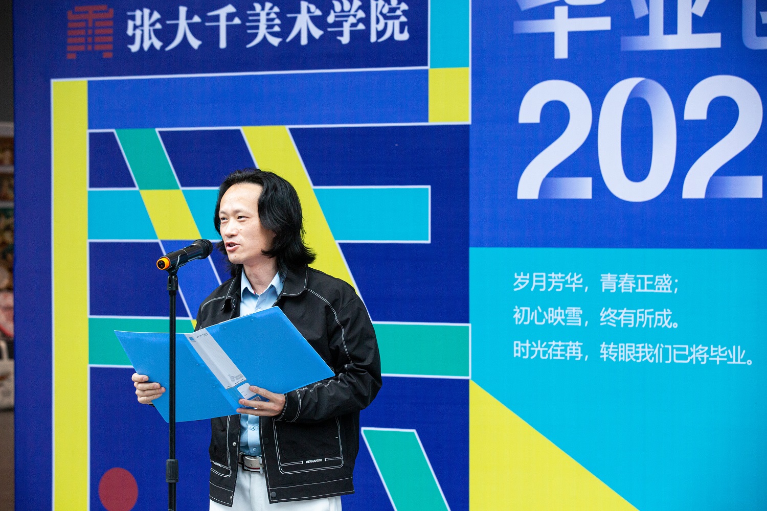 接着,“大千艺苑文化艺术培训公司有限责任公司”董事长吴波及2022届毕业生代表——2018级环境设计专业欧阳环同学就此次毕业展发言。