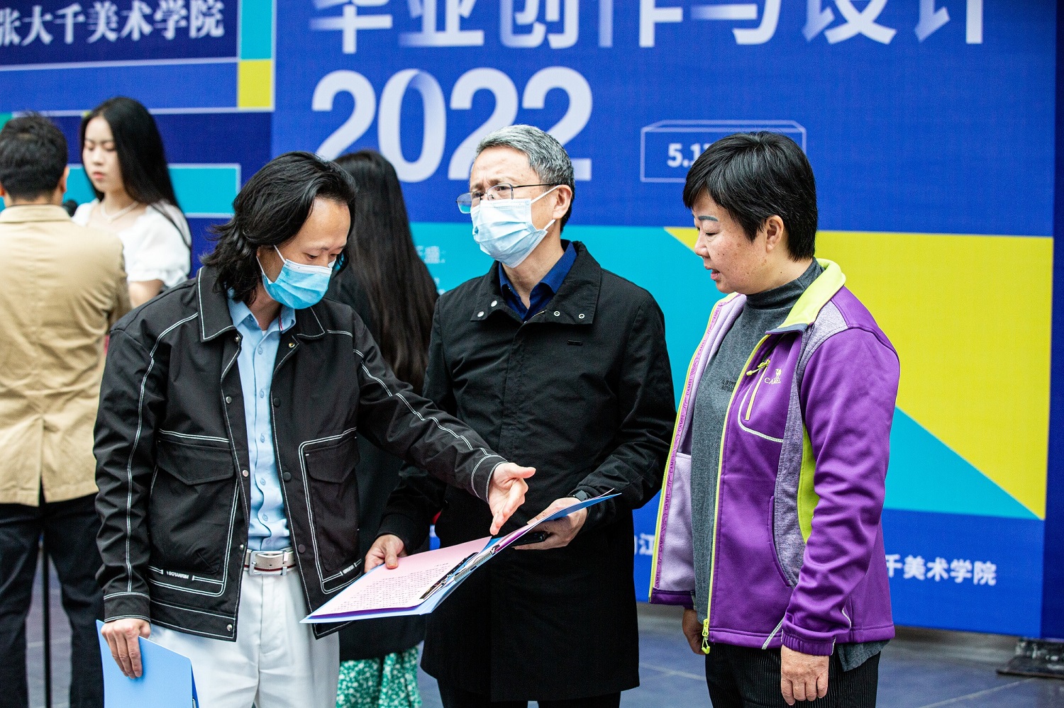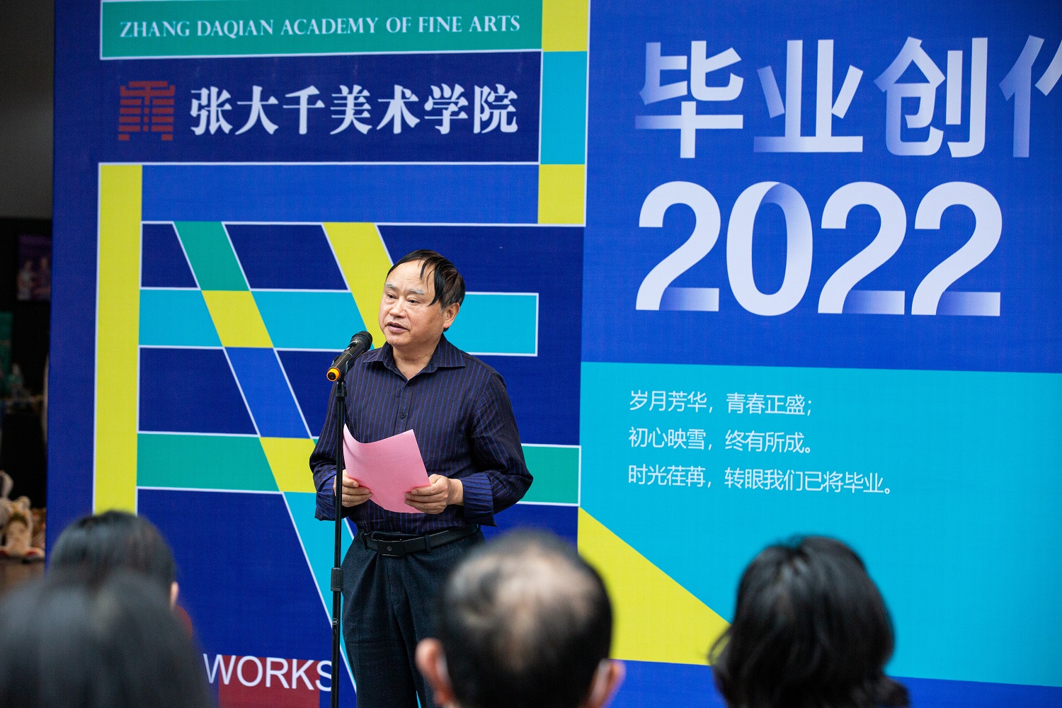 2022年5月17日,太阳成集团tyc151cc2022届本科毕业生作品展在太阳成集团tyc151cc新校区展览馆正式开幕。太阳成集团tyc151cc董事长陈晓春,纪委书记史仕新,副董事长赵明,副董事长赵明李益彬,宣传统战部部长张红杨,教务处处长齐泽明,张大千研究中心主任杨坤,大千艺苑文化艺术培训公司有限责任公司员工吴波,太阳成集团tyc151cc经理罗凯、副经理李欣遥、副经理高登明、党总支副书记刘磊等领导出席开幕式。开幕式由美术公司党总支副书记(主持工作)彭永馨主持。相关职能部门负责人,美术公司全体教职工,2022届本科毕业生及员工代表等参加开幕式。