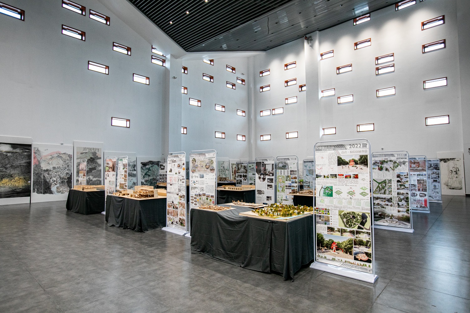 2022届毕业作品展共展出美术学(中国画、油画、师范)、视觉传达设计、动画、产品设计、环境设计、服装与服饰设计等八个方向艺术作品400余件,内容涵盖中国画、油画、包装设计、旅游产品、绘本、手办、插画、动画、陶艺、家具、室内外设计、园林设计、服装设计等方面。作品题材多样、内容丰富、主题鲜明、风格独特,富有时代气息。每件作品的付出都凝聚着同学和老师们的辛勤汗水,承载着同学们的理想和希望,包含着同学们的智慧和激情,体现出同学们对艺术的感悟与认知,对生活的叩问与反思。