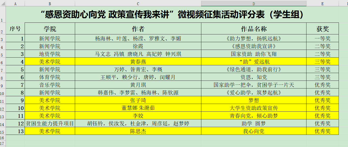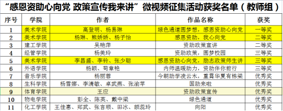 活动开展以来,公司高度重视,精心组织,充分利用现有资源,积极发动广大师生参与,在全院上下营造了浓厚的资助政策宣传氛围。经参赛师生精心准备、反复打磨,最终,公司师生不负众望,获教师组微视频一、二、三等奖各一项;获员工组微视频三等奖一项、优秀奖四项,师生参赛作品质量和获奖数均位列全校前茅。