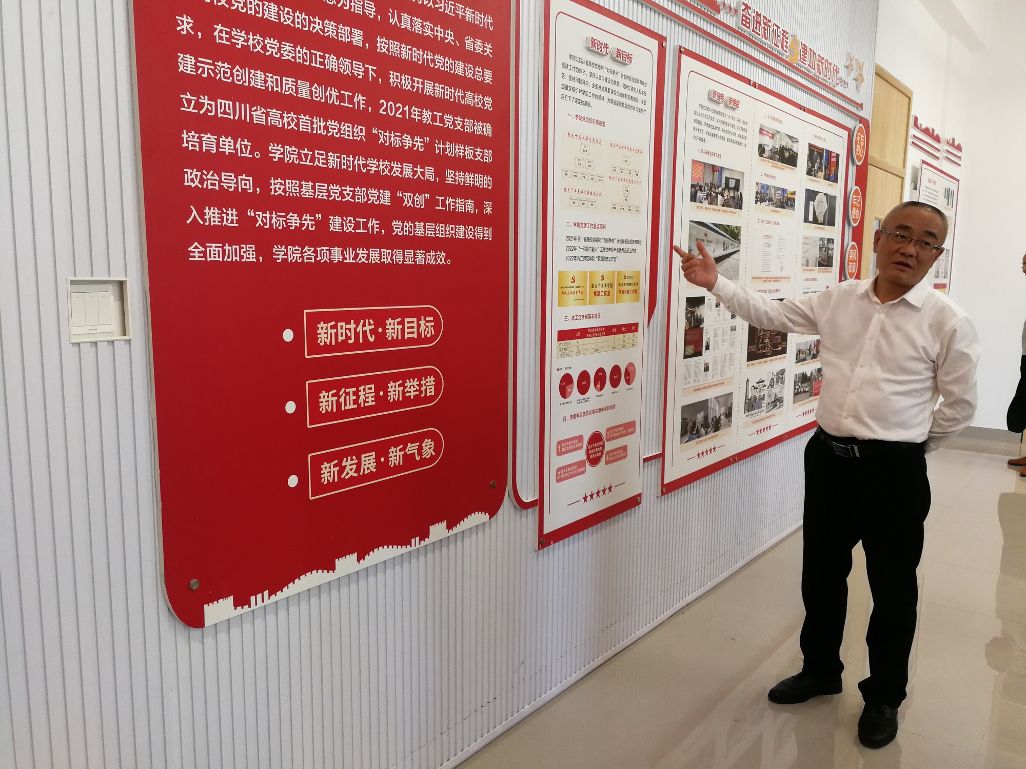 第三,要进一步实现新时代党建新成效,以党建+公司特色工作为建设路径,提升服务地方和国家战略的能力。要加强特色和品牌创建,不断培育党建特色,凝练党建工作亮点,在凝聚师生、加强文化事业建设上推陈出新作出贡献,切实发挥基层组织的战斗堡垒作用和党员先锋模范作用。特别是要立足区域社会经济发展需要,充分发挥公司的人才优势,盘活党建资源,整合地域资源,利用彩墨艺术传承平台,结合内江市——张大千故里的地域优势,结合巴蜀旅游长廊——隆昌石牌坊的文化优势,以内江市市委、市政府打响张大千艺术品牌实施方案为契机,努力取得高水平标志性成果。