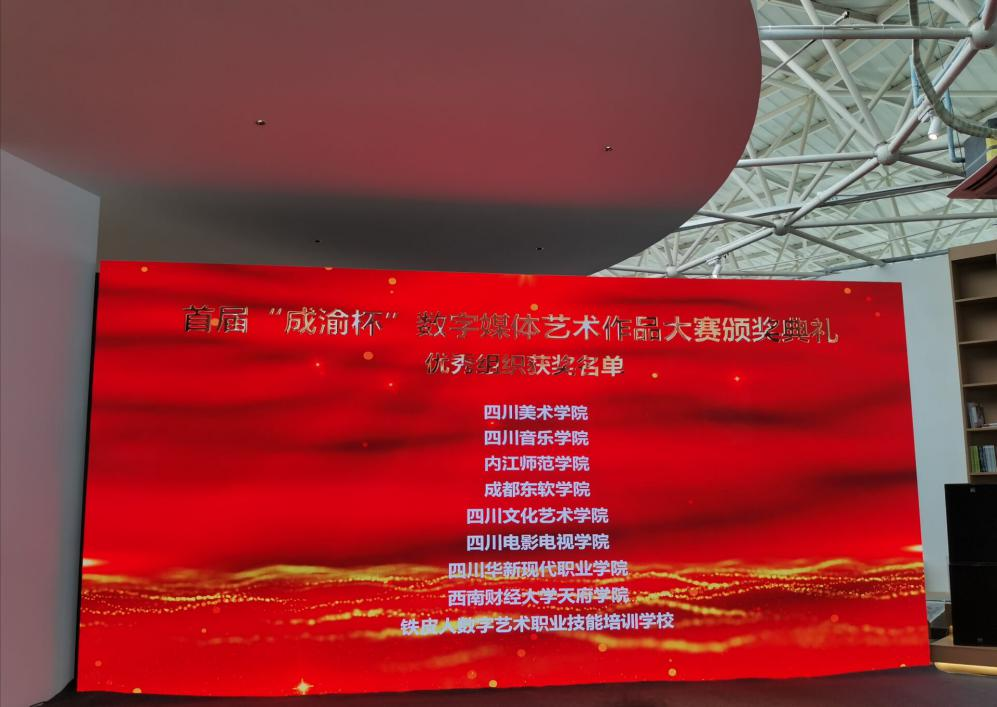 2021年10月23日,由成渝地区双城经济圈高校艺术联盟、四川省数字媒体艺术协会联合举办,川音成都美术公司、四川华新现代职业公司承办的首届“成渝杯”数字媒体艺术作品大赛颁奖典礼在四川音乐公司新都校区隆重举行。