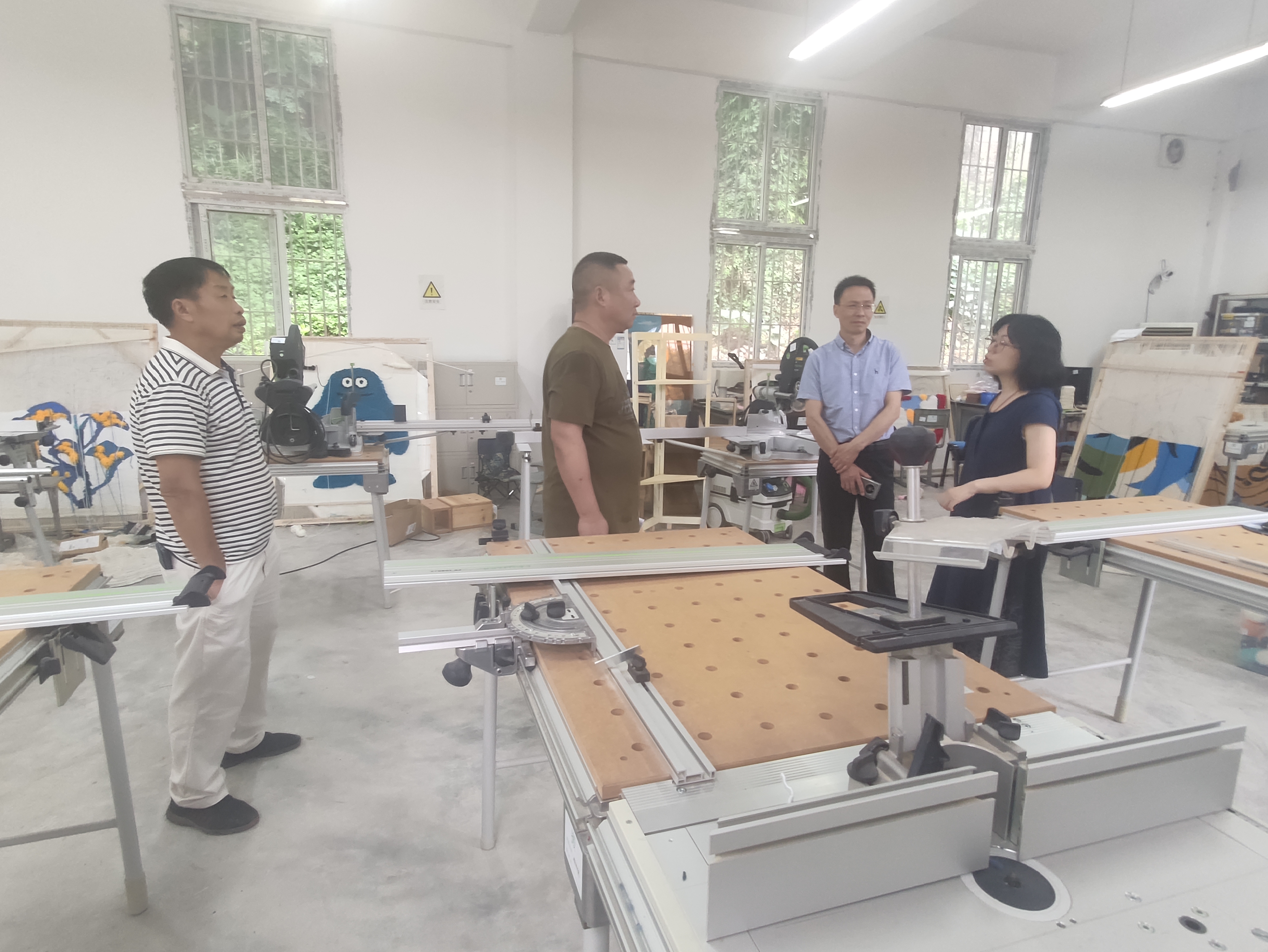 检查小组一行首先对于实训室的场地设施安全运行情况,安全通道,安全操作,安全用电及防火设施,应急医疗设施,易燃品存储,管理人员安全意识等方面展开检查。