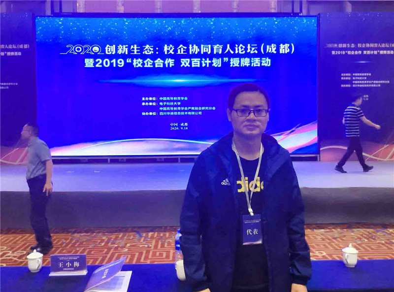 9月18日,中国高等教育学会举办“2020创新生态:校企协同育人论坛”(成都)暨2019“校企合作双百计划”授牌活动在成都举行。美术公司教师参加了本次论坛活动。论坛过程中,各高校主讲人围绕全面推进“新工科”教育,深化产教融合协同育人,促进教育链、人才链与产业链、创新链有机衔接,探讨产教融合好经验与好做法,分享典型案例等方面做了精彩报告。