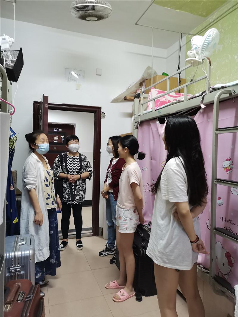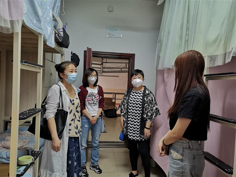 5月25日晚,公司党总支副书记彭永馨、副经理李欣遥、学工办主任刘艳,辅导员杨静、辅导员李铃深入员工寝室看望第一批返校毕业生,了解员工的生活、学习情况。