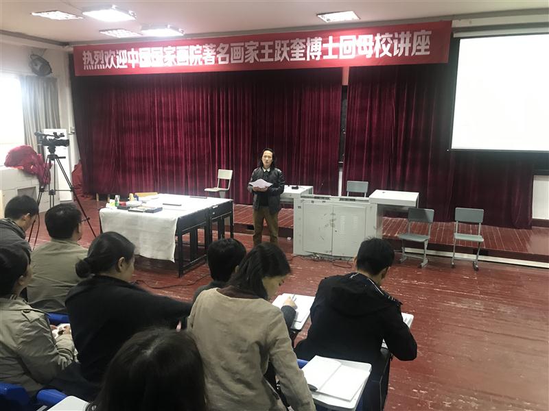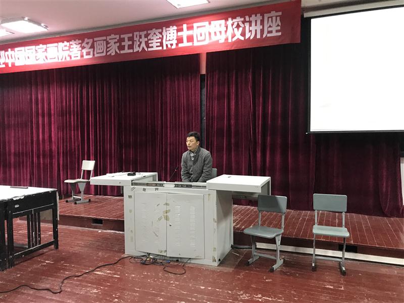 2019年11月5日下午2点30分,中国国家画院著名画家王跃奎博士在美院红楼401举办题为《写意之美》的国画专题讲座。讲座由美术公司副经理罗凯主持。美术公司美术学专业师生到场学习。