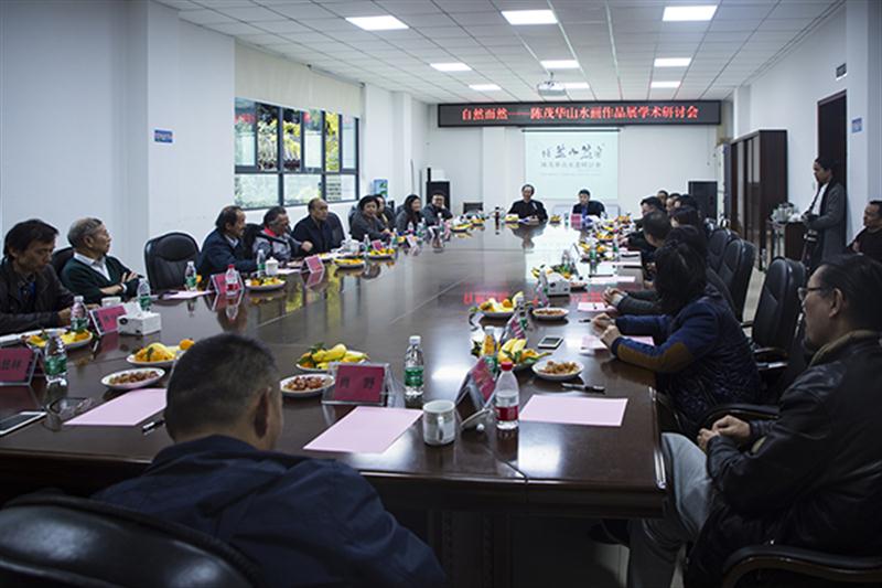 下午4点40分,自然而然——陈茂华山水画作品展学术研讨会在张大千美术馆二楼会议室举行。邱少秋、唐允明、杨仁敏等20名教授、专家及绘画工作者对陈茂华的山水画作品做了深刻的梳理与点评,肯定了陈茂华在写生创作和艺术造诣上的阶段性成就、扎实的基本功、对线条与水墨运用的独到见解,认为陈茂华给从事绘画创作的年轻人树立了榜样;他们希望陈茂华在严谨的同时,能给作品注入更多浪漫的元素。研讨会上,专家们各抒己见,体现了浓厚的艺术交流热情。