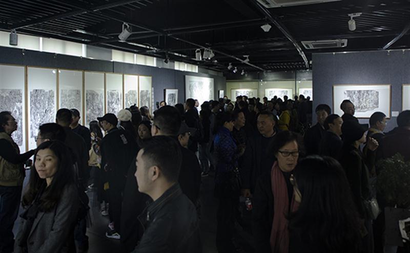 开幕式后,领导与来宾们到达张大千美术馆二楼观看画展。本次画展分为三个展厅,共展出陈茂华120幅山水画,既有写生造景的小品,也有内探心境的宏篇巨制。在“自然而然”的主题下,有陈茂华对“树生”这一主题的独特诠释,有对故土“陌村”的眷恋缠绵,也有对祖国大山大水“临境”的神往敬畏。黑白之间,显现了其个人艺术创作的独特追求。从这些力作中,不难窥见一位优秀艺术家的运化神功,以及对艺术的幽情远思。