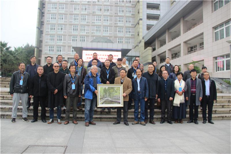 孟冬时节佳气清,内师校园艺术浓。2019年11月16日上午9时,公司于行政楼302会议室参加“艺术名家丹青绘校园美术“主题创作交流会,本次会议由公司党委副书记黄辉主持,董事长陈晓春、油画名家侯宝川、四川大学唐永明教授、四川美院傅仲超教授等艺术名家受邀出席,公司副经理罗凯、党总支副书记彭永馨、副经理谢斌及师生代表参加本次交流会。