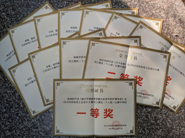 近日,“太阳神鸟杯”天府·宝岛工业设计大赛(内江赛区)传来佳讯,公司师生共获得一等奖1项,二等奖5项 ,三等奖8项。