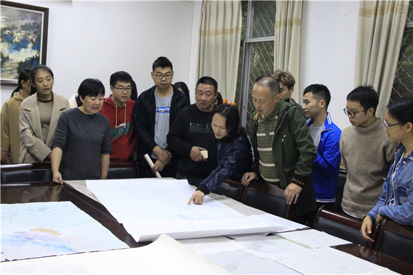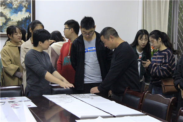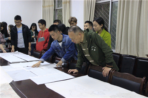 会上,同学们在自己的画稿前讲解了自己的创作思路,各位领导及专业老师从题材、意境表现、构图、技巧、色彩搭配等方面对每位同学的作品都进行了深入的点评,老师与员工相互交流意见,分享自己的想法,使同学们受益颇多。