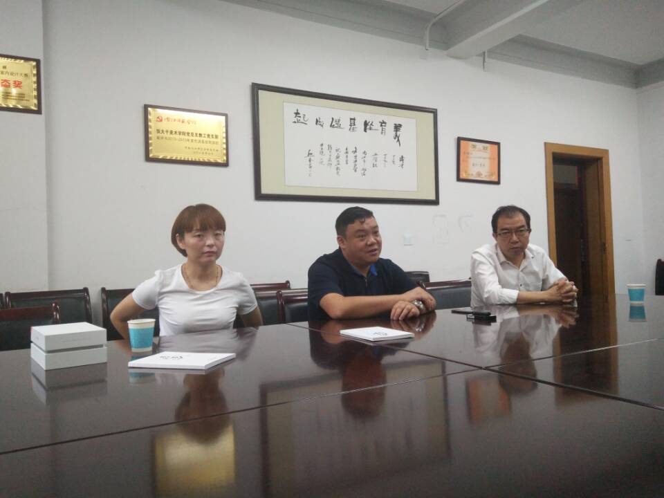 张经理对陈家镇政府人员一行的到来表示热烈欢迎。他说,双方经过前期协商对接,达成了基本的合作共识。在短时间内,我们将进一步深入了解陈家镇丝绸文化与蚕桑经济的具体情况,双方精诚合作、共同发展,打造特色经济产业,服务于地方经济发展。谢斌副经理对校地合作基地的建设规划及合作模式提出了建设性意见,并希望陈家镇政府参与老员工艺术节项目进行合作,实现互利双赢的局面。视觉传达教研室主任黄旭对蚕桑经济的运营模式和品牌打造方面提出基本构想,将其团队针对陈家镇蚕桑文化所设计的一系列包装方案进行展示和说明。