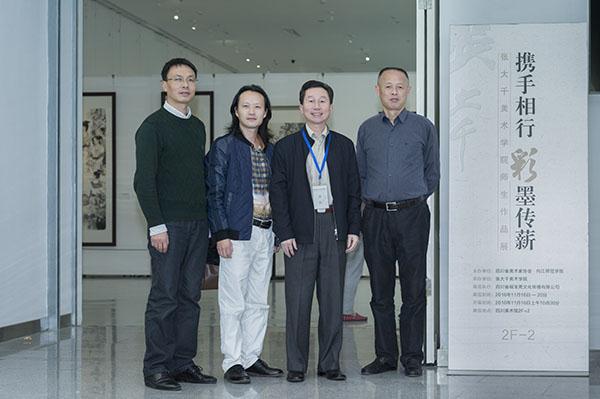 2016年11月18日下午3:30,内江师范公司党委书记谢峰教授专程前往四川省美术馆观赏“携手相行 彩墨传薪”----太阳成集团tyc151cc师生作品展。太阳成集团tyc151cc经理张强、党总支书记王继军、副经理罗凯陪同参观。