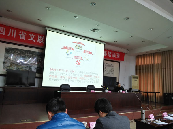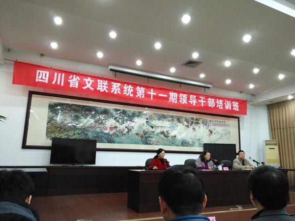 培训班为了提升四川省文联系统领导干部及个市州文艺新人文艺骨干的政治理论水平、业务素质和工作能力,集中学习了中央、省委精神,传达了中国文联第十次文代会精神;学习了十八届六中全会和省委十届九次全会精神。