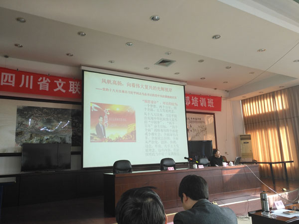 培训班由四川省文联党组书记平志英、省委党校任春艳博士主讲,由四川省文联党组副书记李兵主持。参加人员包括各市(州)文联主要负责人、文艺新人、文艺骨干及省级文艺家协会、省文联各直属单位负责人等。