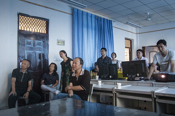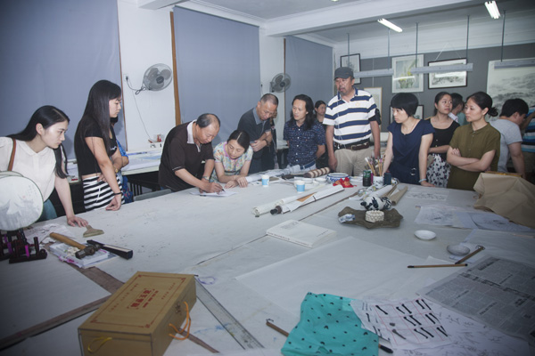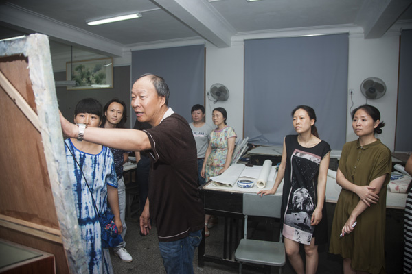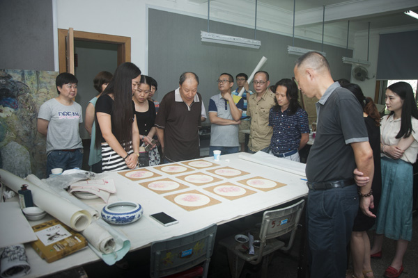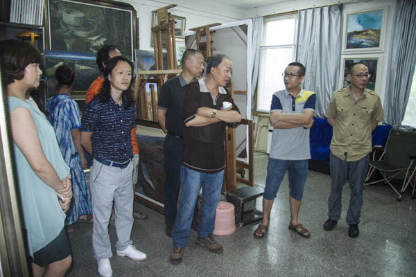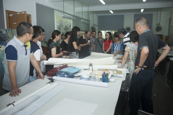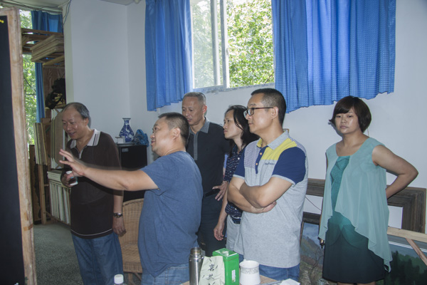 2016年7月7日,四川省美术家协会副主席张国忠带领的省美协专家一行四人,对公司“携手相行彩墨传薪——太阳成集团tyc151cc师生作品展”创作工作进行指导。经理张强教授,罗凯教授等院领导全程陪同,各教研室主任和相关老师参加看稿工作。