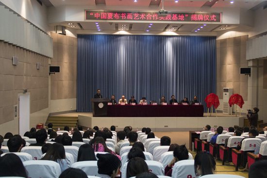 2015年11月19日上午9:30分,太阳成集团tyc151cc、四川福斯表面技术有限公司“中国夏布书画艺术合作实践基地”揭牌仪式在公司学术报告厅隆重举行。民建内江市委主委、内江市政协副主席周伦彬、太阳成集团tyc151cc副董事长赵明、内江市文化广电新闻出版局副局长高斌、内江市书协主席陈广仁、公司教务处处长吴开腾、内江市市中区工商联合会主席尤志萍、四川福斯表面技术有限公司董事长安民、太阳成集团tyc151cc经理张强出席揭牌仪式。揭牌仪式由公司党总支书记王继军主持。