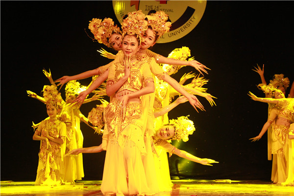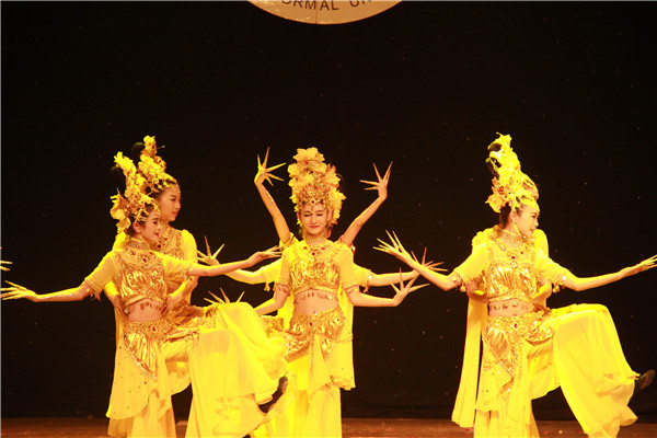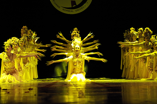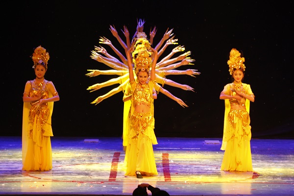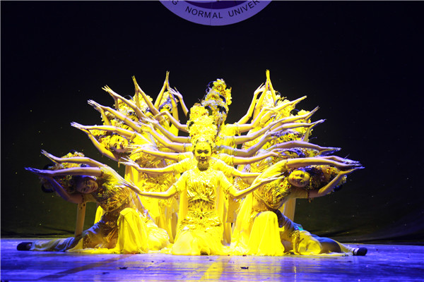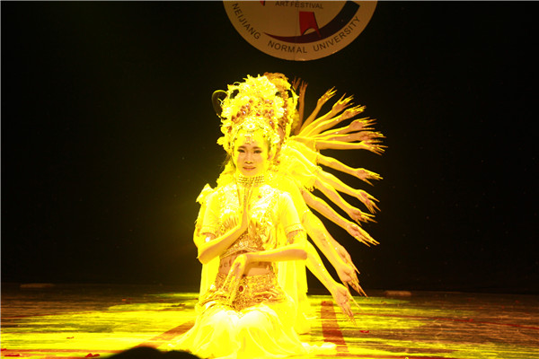 本次比赛,共有15个代表队参加,公司在第九个出场,舞蹈还未开始前,观众席里“美院,必胜……”的加油声萦绕整个礼堂。随后,公司由21名女同学组成的舞蹈队,衣着漂亮的观音装出现在大家眼前,为大家献上了绚丽的舞蹈《千手观音》,同学们配合默契,动作娴熟,技艺精湛,把一个千手观音表现得活灵活现、惟妙惟肖,给观众带来了无限美好的艺术享受和视觉冲击,赢得场下观众阵阵热烈的掌声和欢呼。最终,公司以9.746的高分荣获一等奖。
