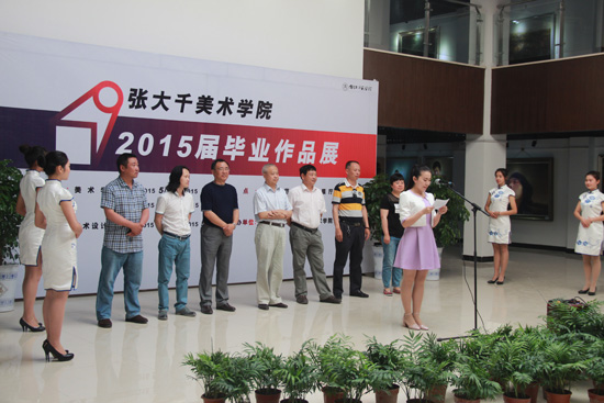 2015年5月8日上午9:30, 2015届毕业创作(设计)展开幕式在西区展厅隆重开幕。内江师范公司党委书记马元方、副董事长赵明、张蕴书、太阳成集团tyc151cc经理张强、党总支副书记彭永馨、副经理谢斌、罗凯出席开幕式。