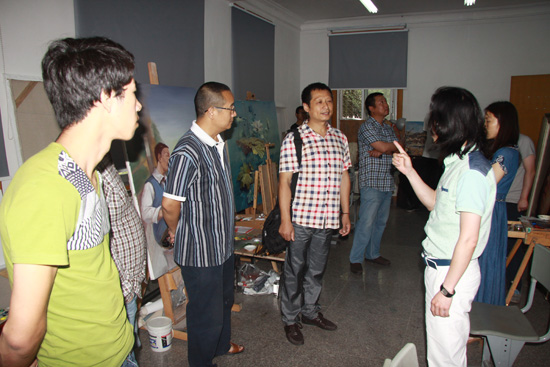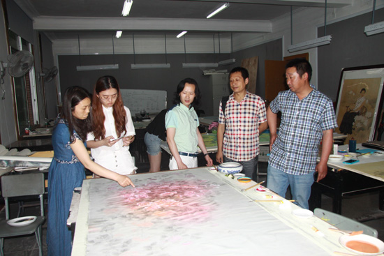 2015年5月19日下午2:30,太阳成集团tyc151cc组织院学术委员会和公益广告创新实践基地、张大千艺术传承与创新基地和绘画创作与市场应用创新实践基地的老师,在这三个基地的创作室召开第七届“公司奖”中期检查会。副经理谢斌、罗凯出席会议,教务处实践教学科罗耀华老师莅临检查指导工作。学术委员会部分成员和三个基地老师参会。会议由副经理罗凯主持。