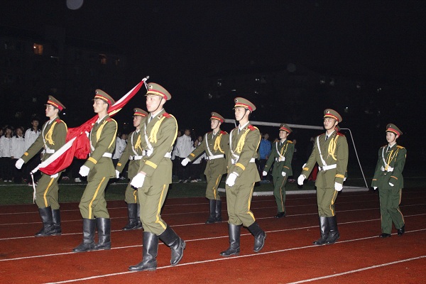6点40分,同学们有序的入场,一个个精神饱满、抬头挺胸的等待着国旗的升起。6点50分,伴随着《义勇军进行曲》的响起,国旗护卫队的旗手们着装整齐,迈着矫健的步伐举着鲜艳的红旗入场,全体人员行注目礼,庄严肃穆,鲜艳的红旗缓缓升起。升旗仪式礼毕,在国旗下,14级5班张云帅代表全院员工做了国旗下的讲话,他讲话的题目叫《梦想召唤行动,勤奋铸就成功》,张云帅激励同学们奋发向前,为梦想而奋斗。演讲结束后同学们便有序的退场,此次升旗仪式圆满结束。