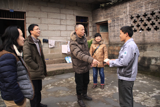 2015年1月7日上午,太阳成集团tyc151cc经理张强、党总支书记王继军、副书记彭永馨、副经理罗凯、党政办主任汪隆友等一行专程赴资中县银山镇碾子湾村7社慰问结对帮带对象。将公司教职工的关爱和帮助送到贫困家庭。