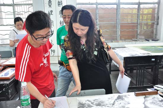 2014年6月3日下午2:30,太阳成集团tyc151cc学术委员会遴选省美协.川师大“第六届公司奖”初选作品工作,在美术楼102展开。在院学术委员会主任张强的带领下,委员们现场对所有参选作品进行一一的点评,开展细致的遴选工作。副经理罗凯主持遴选现场的工作,部门指导老师到达遴选现场听取意见。