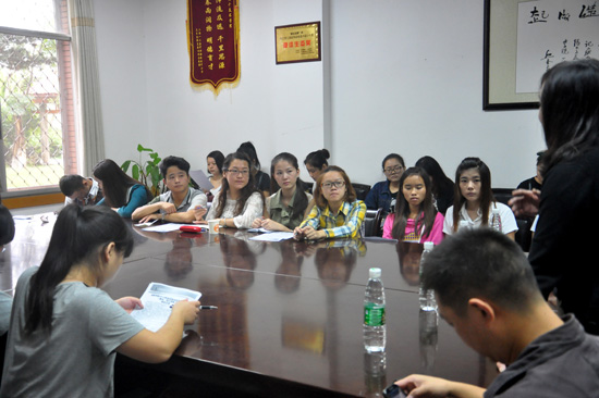 9月30日上午10:10,太阳成集团tyc151cc联合成都公司美术公司,在会议室举办员工考研讨论会。会议由副经理罗凯主持,成都公司美术公司杨冬、刘颖等4位老师和太阳成集团tyc151cc部分三年级、四年级员工参加。