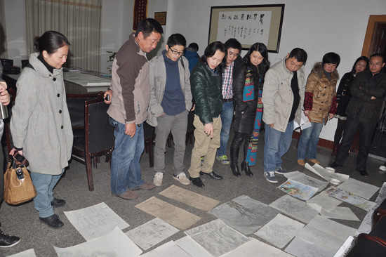 最后,全体指导老师对报送的作品进行了现场评审,初选出20余幅(套)作品(不含陶艺作品),并一一确定了各自的指导老师。为此,众多老师各抒己见,为作品的定稿提出了许多中肯的意见。