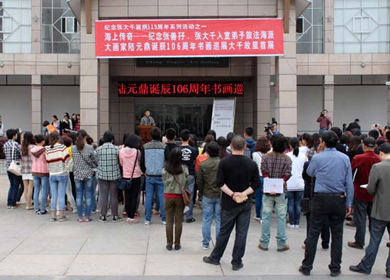 2014年4月26日上午10点,为纪念张大千诞辰115周年系列活动之一的“海上传奇——纪念张善子、张大千入室弟子旅法海派大画家陆元鼎诞辰106周年书画巡展大千故里首展”在张大千纪念馆隆重举行。公司党总支副书记彭永馨、副教授陈茂华、教师刘雪梅,以及11级和13级国画班的62名员工参加了此次展览。