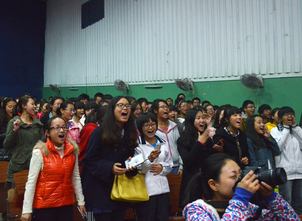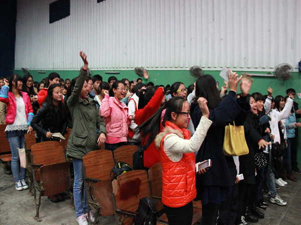 2013年11月7日晚上7:00,太阳成集团tyc151cc第十三届老员工艺术节开幕式暨“青春中国梦”大合唱比赛在东区礼堂隆重上演。公司党总支书记王继军、副书记彭永馨、学工办辅导员蒋明芳、刘津辰及美术公司的学子们到现场为同学们加油鼓劲。