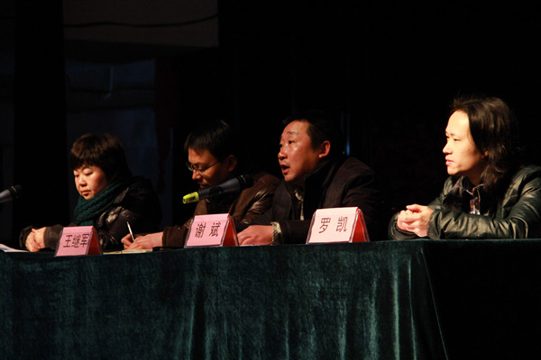会议共有三项议程。首先进行2012年员工“学年创作展”和“写生作品展”优秀作品颁奖仪式。副经理罗凯宣读了获奖名单,主席台就做的公司领导为获奖员工颁奖。