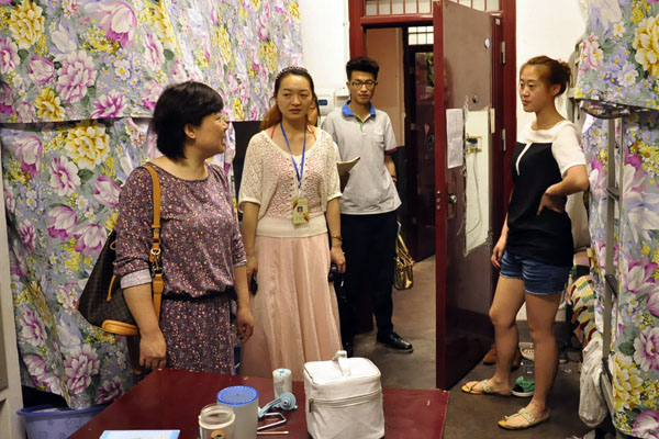 当来到二十六幢的2011级9班员工宿舍时,王书记一进门就迫不及待地问起了员工们家乡的情况以及与家人联系的情况如何,尤其是来自雅安的员工,表示会尽力提供各种帮助,并叮嘱同学们放宽心态,不要轻信网络谣言与肆意传播;同时还表示以后的志愿者招募工作会按时开展,请大家不要轻信各种非官方组织的消息;最后还讲述了相关防震措施,并叮嘱大家对可能发生的余震不要惊慌,听从楼管阿姨、值班老师及员工干部的指导安全疏散,要求各室长加强安全防范管理,以保障员工的生命财产安全。同学们纷纷表示在老师们的关心和爱护下,消除了恐慌,并纷纷称不会轻信网络谣言,提高防骗和安全意识。