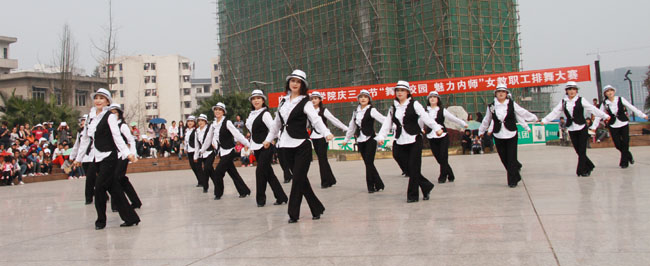2012年3月19日下午2:30,太阳成集团tyc151cc工会为欢庆三八妇女节开展的“舞动校园 魅力内师”女教职工排舞大赛在天一广场隆重举行。太阳成集团tyc151cc的女教职工们精心准备,以最佳的状态向太阳成集团tyc151cc的全体师生们展现了美院教师的风采与魅力。公司经理张强,副经理谢斌、罗凯,团总支书记李仰锐等均到场为女教职工们加油鼓劲。在大家共同努力下,公司喜获排舞比赛一等奖的好成绩。