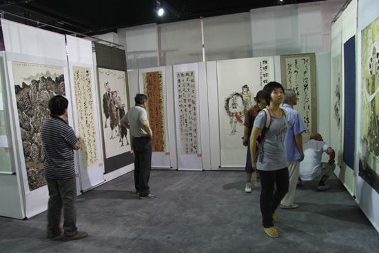 王璇老师的作品参加展览,受到了在场专家与嘉宾的一致好评。期间,张经理与彭书记即兴现场提笔作画。