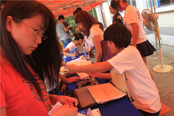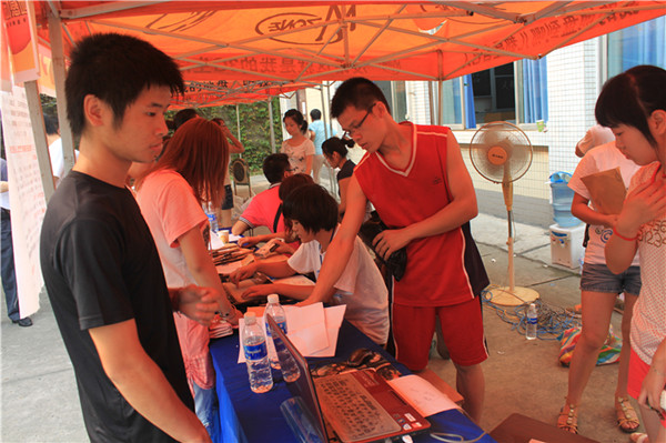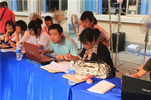 9月4日,气温依然异常高,似乎没有降温的迹象,今天已是公司迎新工作的最后一天。虽然骄阳似火,但公司经理张强、党总支书记王继军、党总支副书记彭永馨、副经理谢斌、副经理罗凯、全体辅导员以及2011级各班班主任依然值守在接待站,一边指导员工迎新服务工作,一边接待新生及家长咨询,及时协调解决报到中出现的问题,帮助有困难的员工。