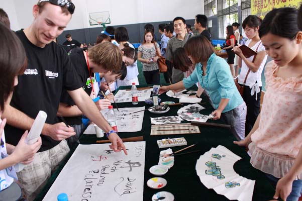 3-12公司师生与美国、澳大利亚外宾进行书画交流互动