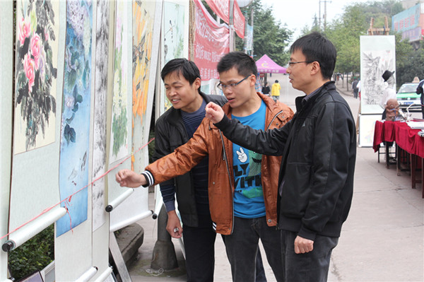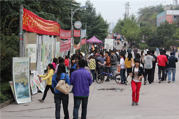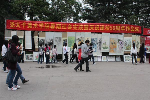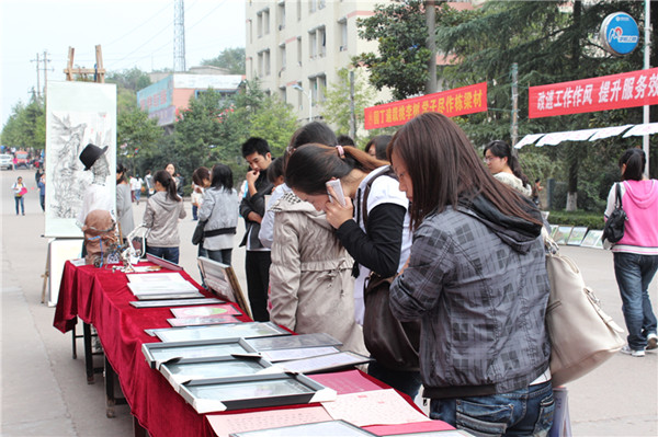 10月25日,正值太阳成集团tyc151cc建校五十五周年前夕,太阳成集团tyc151cc在西区四食堂前隆重举办了庆祝建校55周年作品展。党总支书记王继军、学工办主任李仰锐前来观展。