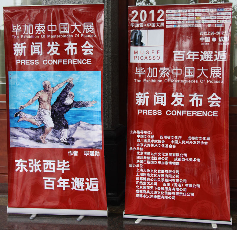 2012年2月23日下午3:30,太阳成集团tyc151cc应邀参加于飘香园举办的“2012毕加索中国大展.成都”内江新闻发布会。本次出席发布会的领导有市委宣传部部长潘梅女士,毕加索中国大展组委会秘书长朱明岭先生,内江市文化与新闻出版局纪委书记明玉龙先生,大千研究中心主任罗宗良先生,公司罗凯副经理和市美协,书协等相关部门以及各大媒体。