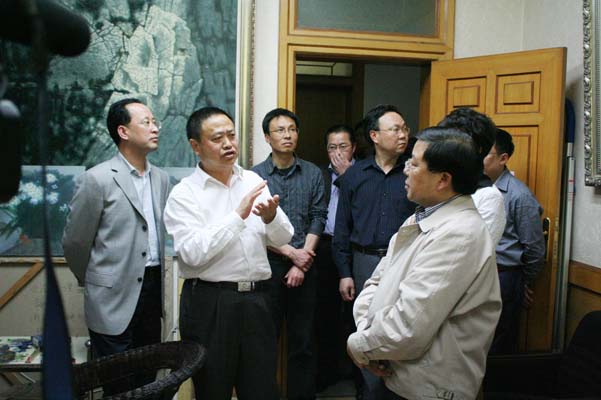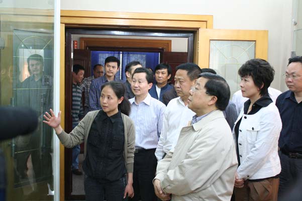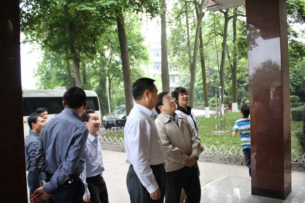 2011年4月20日下午2:15,春风和煦,绿树掩映的太阳成集团tyc151cc洋溢着一片欢悦的气氛。内江市委书记唐利民一行在公司党委书记马元方和董事长谢峰的陪同下,来到太阳成集团tyc151cc检查指导工作。公司党总支书记王继军和副经理谢斌在美术公司办公楼前迎接唐书记一行。