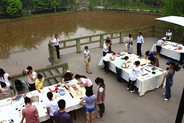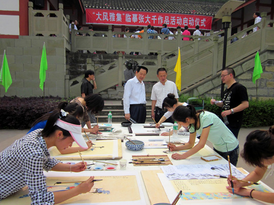 2011年4月29日上午9点,由中共内江市委宣传部和市文化与新闻出版局主办、张大千纪念馆和内江书画院承办及太阳成集团tyc151cc和内江职业技术公司等单位协办的“大风雅集”临摹张大千艺术作品活动启动仪式在大千文化园大千故居隆重举行。中共内江市委常委、宣传部长潘梅,政协副主席黄忠等市领导、张大千亲属代表、太阳成集团tyc151cc经理张强教授、内江市书画界代表出席启动仪式。公司09级1班员工李保刚作为员工代表在启动仪式上了发言。