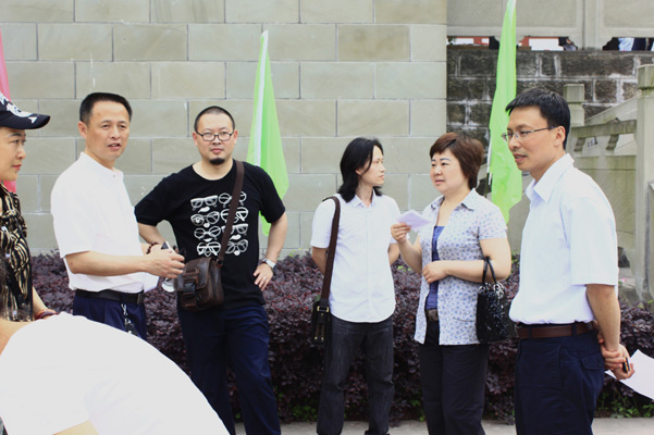 张强教授、党总支书记王继军、副书记彭永馨、副经理谢斌、经理助理罗凯、国画教研室主任陈茂华、