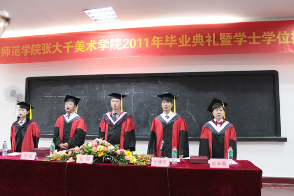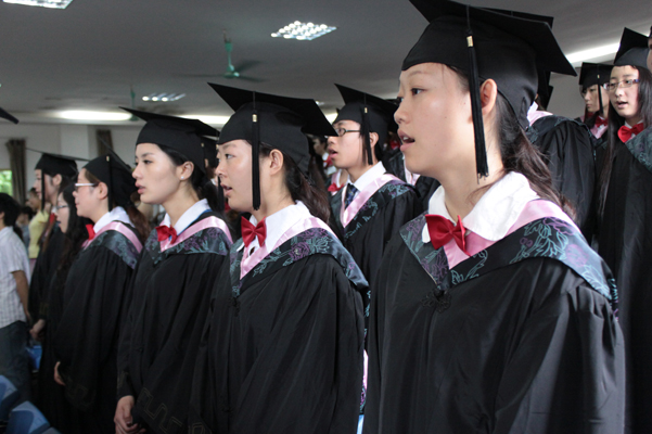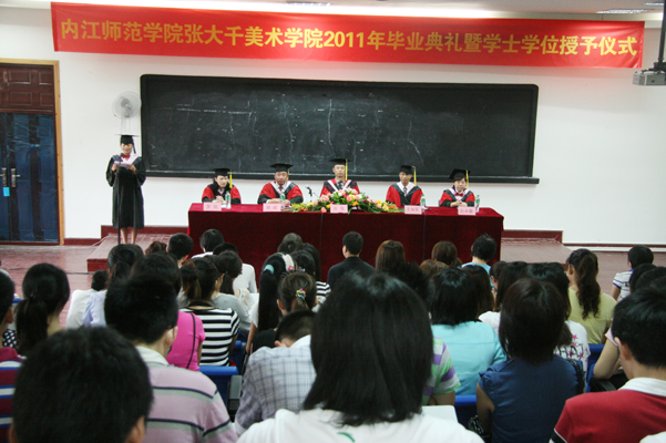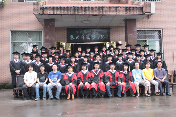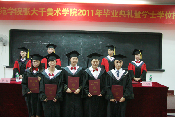 至上午10:30,在共唱校歌中,2011年毕业典礼暨学士学位授予仪式圆满落幕。全体院领导、老师及毕业生代表们在美术公司办公楼前合影留念。