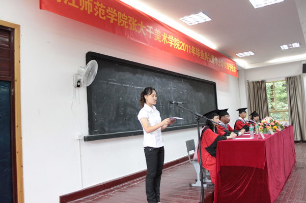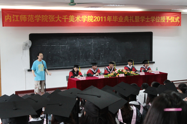 任刘戈副教授以同学们熟悉的内江话向获得学位的同学们表示祝贺,真切地希望每位同学鹏程万里,且时常想起在桐梓坝的生活,想起美院,并常回家看看。