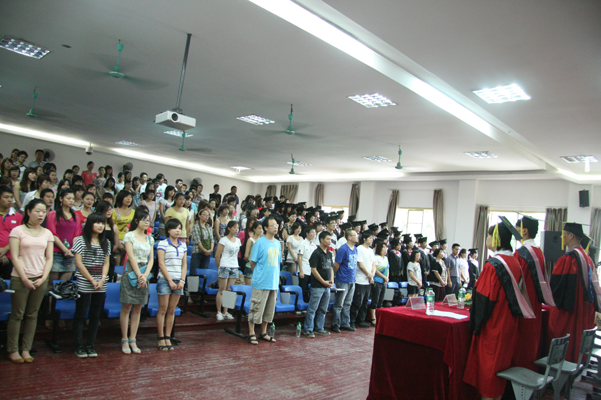 6月21日早上9:00,2011年毕业典礼暨学士学位授予仪式在红楼401隆重举行。经理、学位评定委员会主任张强,党总支书记王继军,党总支副书记彭永馨,副经理谢斌、罗凯,各教研室主任、学办主任、教学办主任及毕业班主任出席大会,全院共有40名毕业生代表接受学士学位授予。本次毕业典礼暨学士学位授予仪式由王继军书记主持。
