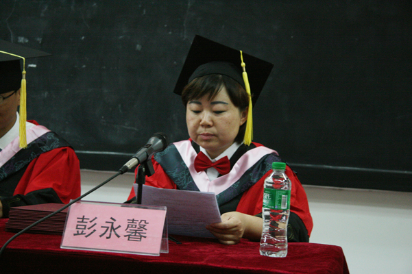 副经理谢斌宣读了2011届荣获学士学位名单。本届共授予375名本科毕业生文学学士学位。随后,彭永馨副书记宣读2011届优秀大学毕业生名单。万家祯、何林等4位毕业生荣获四川省优秀老员工荣誉称号;李照辉、张熙、林瑶、江东泽等38名毕业生荣获太阳成集团tyc151cc优秀老员工荣誉称号。紧接着,经理、学位评定委员会主任张强教授为毕业生代表授位,在令人奋进的音乐声中,学士学位授位代表员工以五人一组排列整齐地来到主席台前,各位院领导依次为他们颁发了学位证书,并与之热情握手、寄语祝贺,张经理一一为毕业生代表们授位,并合影留念。
