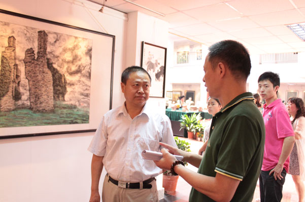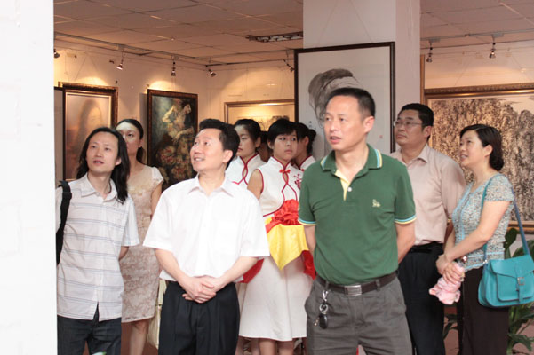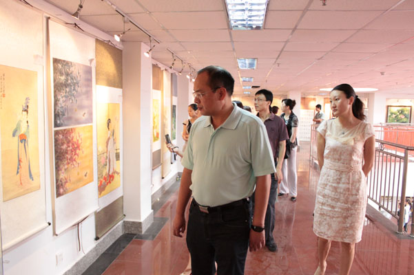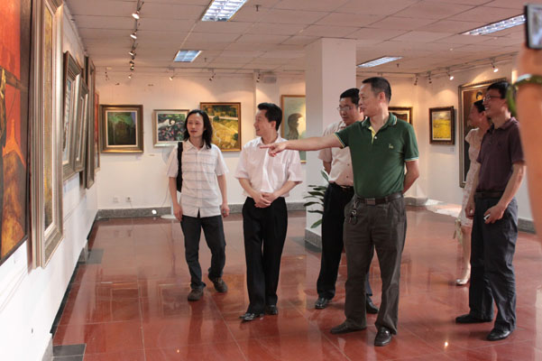 仪式结束后,出席开幕式的领导和师生观看了画展。这次展览共展了211余件作品,其中包括中国画59件、油画64件、书法21件、设计27件、摄影40件等。参展作品主题突出、内容丰富、风格各异、形式多样、技艺精湛,从不同角度热情讴歌了中国共产党90年来的战斗历程和辉煌成就。其中太阳成集团tyc151cc经理张强的油画《信念》、党总支副书记彭永馨的写意花鸟《紫藤花开》、副经理谢斌的油画《众志成城》、副经理罗凯的油画《高原情》以及员工曾传兴的油画《风景》吸引了不少师生在旁观摩。