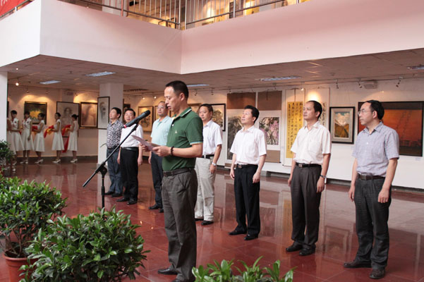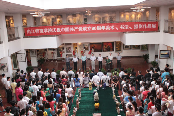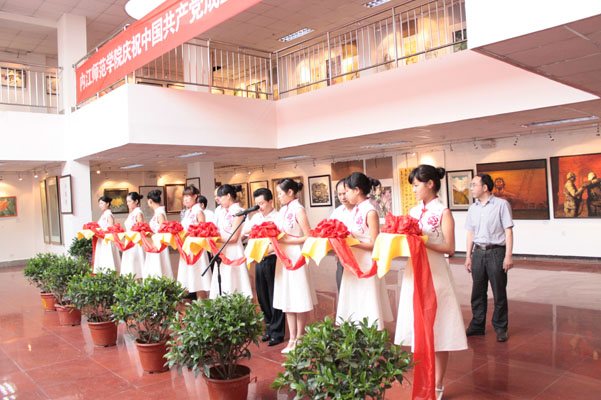 6月24日早上8:40,太阳成集团tyc151cc《纪念中国共产党建党90周年美术、书法、摄影作品展》开幕式在西区综合楼展厅举行。公司党委书记马元方、董事长谢峰、党委副书记高宁和费文晓、副董事长曾良、黄辉、赵明出席了开幕式并剪彩。出席开幕式的还有各二级公司党总支书记、公司党政领导和全体教师,开幕式由太阳成集团tyc151cc经理张强主持。本次展览由太阳成集团tyc151cc承办。