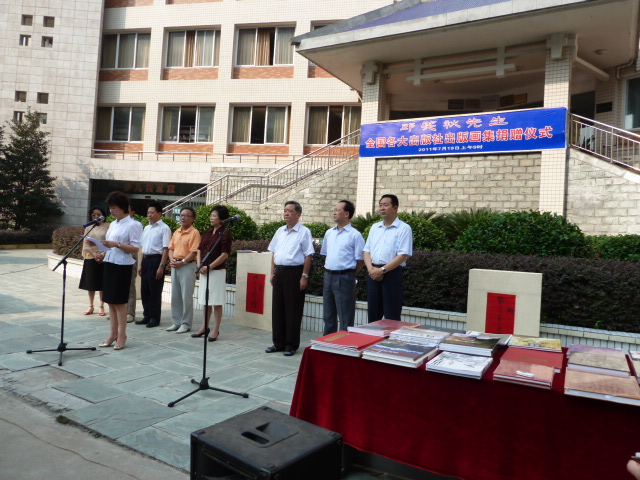 著名国画家邱笑秋先生于7月19日9:00在内江市图书馆举行画集捐赠仪式,张强经理率美术公司师生参加了仪式。受赠单位还有内江市档案馆、内江市图书馆,出席该仪式的有内江市常委、宣传部长潘梅女士,内江市政协主席陈宗淑女士以及受赠单位领导及员工。